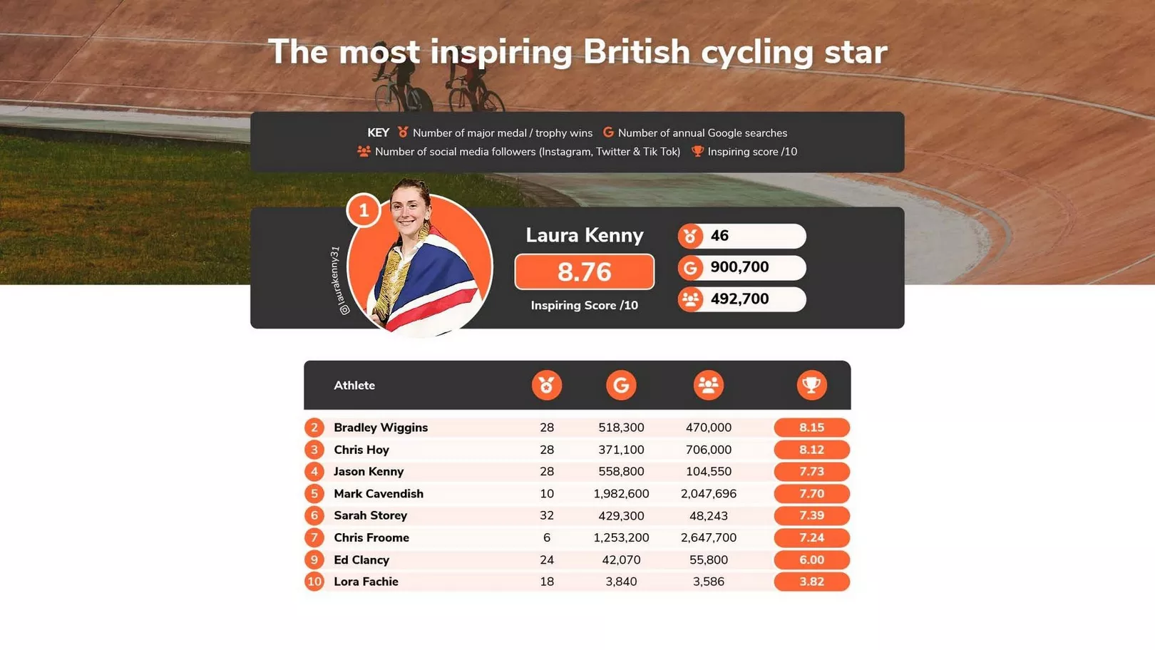 British track and road cyclist Laura Kenny has six Olympic medals from three different Olympic Games and is one of the nation’s most successful cyclists of all time.